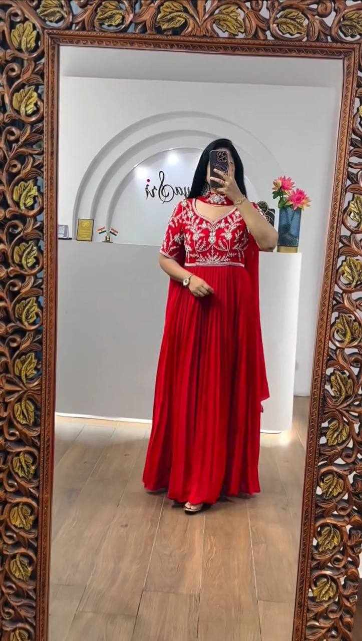 | Name : | PC 459 Red Fox Georgette Embroidered Gown |