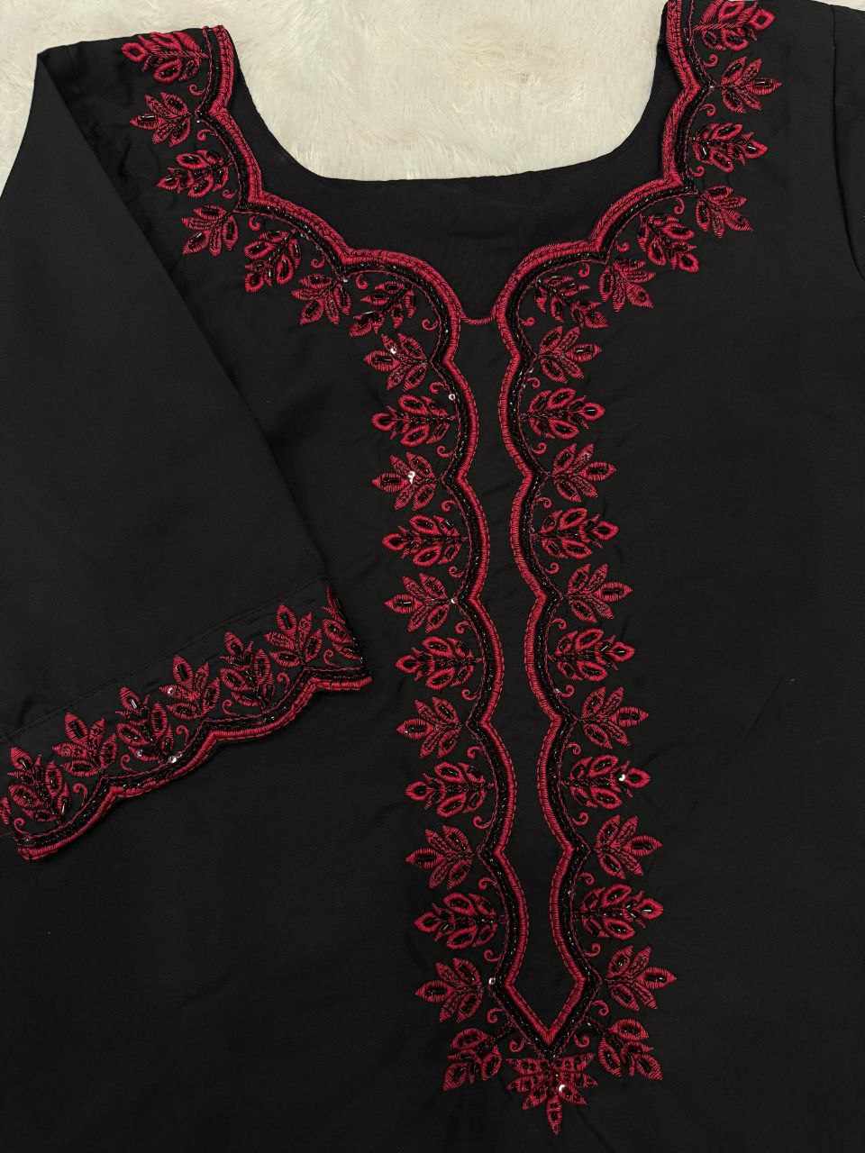 Top – Pure French Crepe kurta with exquisite bead, sequence handwork, and embroidery detailing