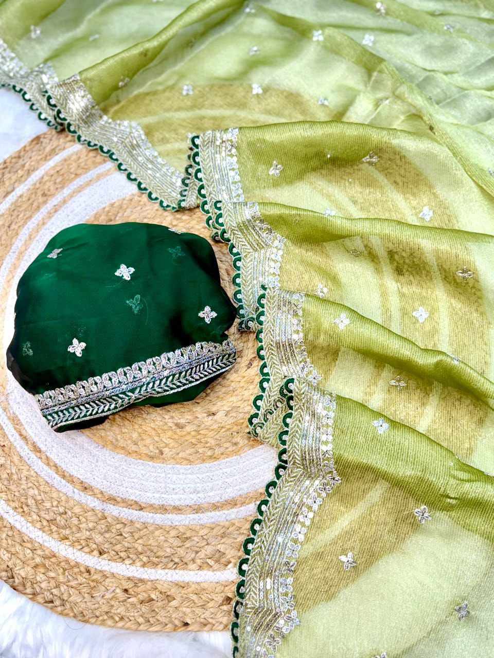 | Name : | RC Sitara Green Thread Embroidery Beautiful Saree |
